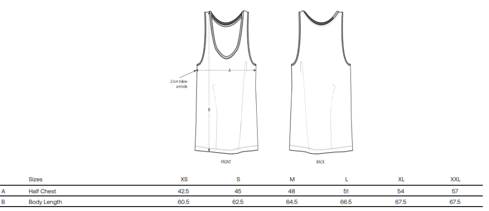 Bez rukávů, lemování 1x1 žebrovaným úpletem u výstřihu a průramků, vnitřní zadní krční páska z totožného materiálu, spodní lem s úzkým dvojitým prošitím.